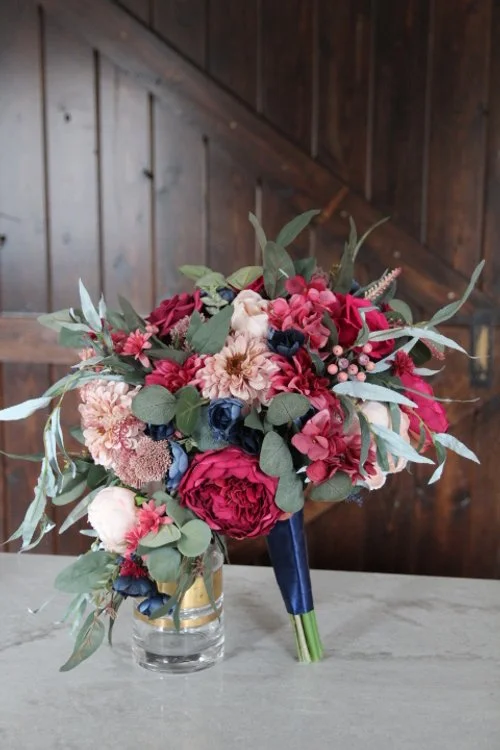 Pomegranate and Navy Silk Wedding Flowers - Reveal and Review