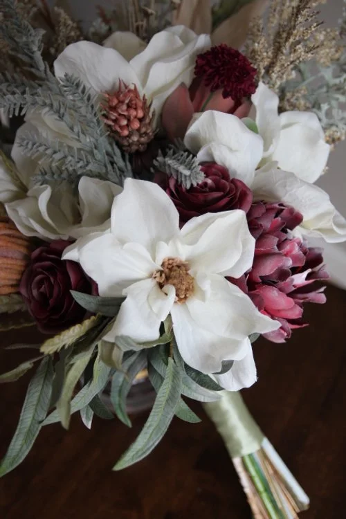 Whether your bouquet had 15 flower varieties or just a few, a custom bridal bouquet recreation in silk flowers is a great way to celebrate such a special day and preserve memories. Reach out today for more information!