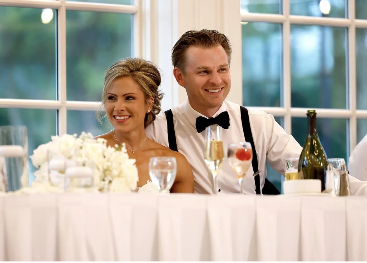 This photo is your reminder to make your flowers work for you! Whether you just lay bouquets on your head table or display them in vases around your reception venue, this is a great way to get more bang for your buck!